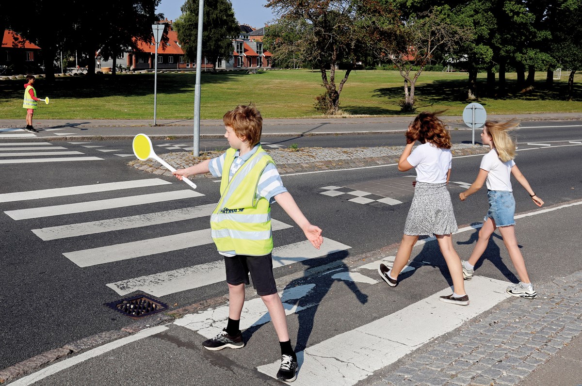 At skolepatruljen holder børnene tilbage betyder derfor ikke, at kørende trafik må køre. Man skal - som altid - stoppe ved en fodgængerovergang, når nogle venter på at komme over.